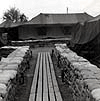 31 January members of 3rd Platoon, 4th Squad, gather to receive their mail by the squad tent on Long Binh Post. The photgograph was taken from the "Tree House" Fire Guard & Watch Tower. The showers and latrine bookend the water tank tower in the background. |